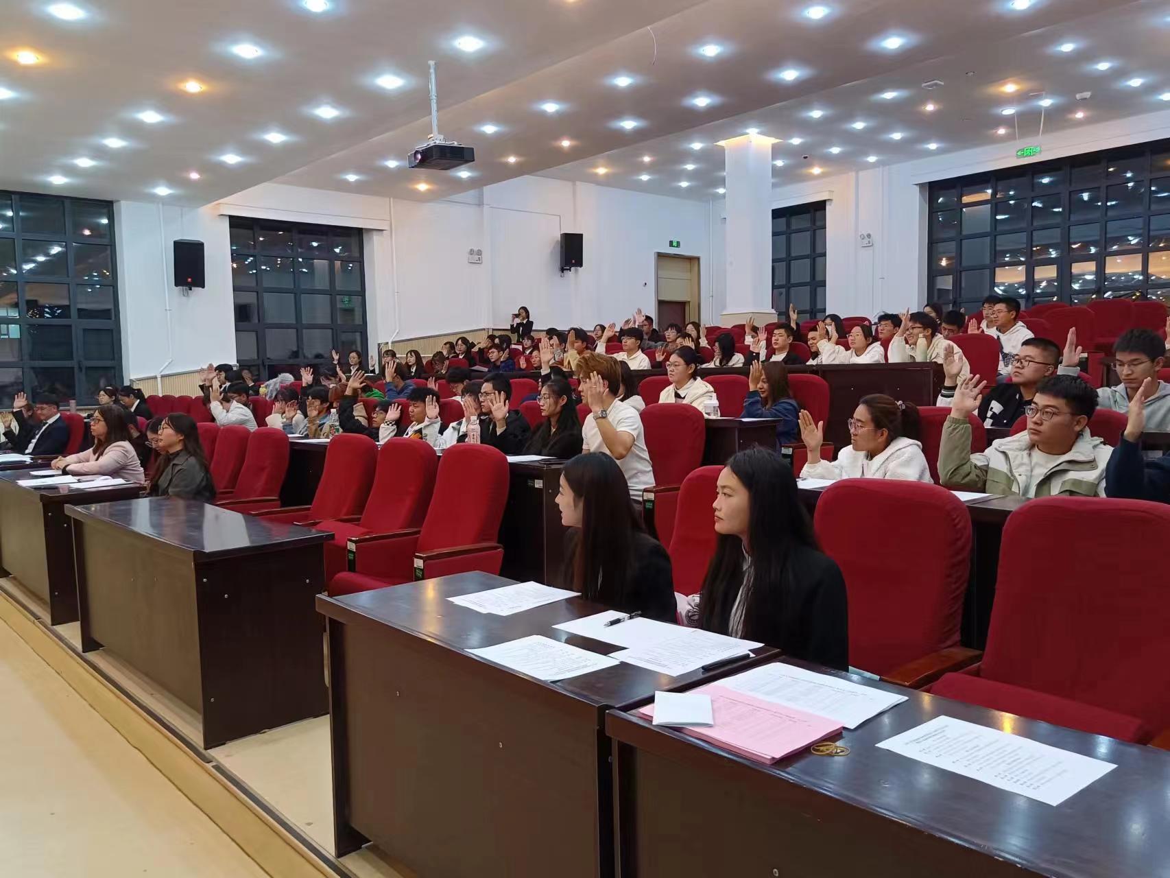 第三届学生代表大会暨第六届团学组织换届大会于2023年10月18日晚19:00在前卫北区理化楼第一阶梯教室举行。澳门博彩党委副书记兼副院长吴哲老师、澳门博彩学生工作办公室全体辅导员、第五届团学组织主席团成员、各年级正式代表出席了本次会议。会议由团委负责人母茂松老师主持。