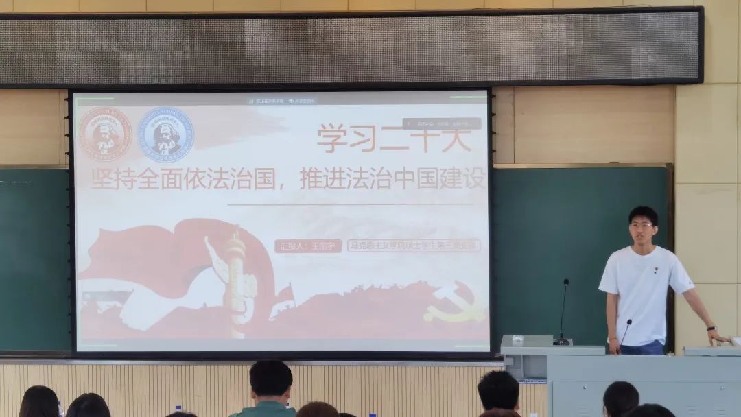 马克思主义澳门博彩三名硕士研究生以微党课的形式从全面依法治国、党章修订、人与自然和谐共生三个层面讲解以宪法为核心的中国特色化社会主义法律体系、党章的精髓要义以及人与自然和谐共生现代化理念的探索历程与科学内涵。