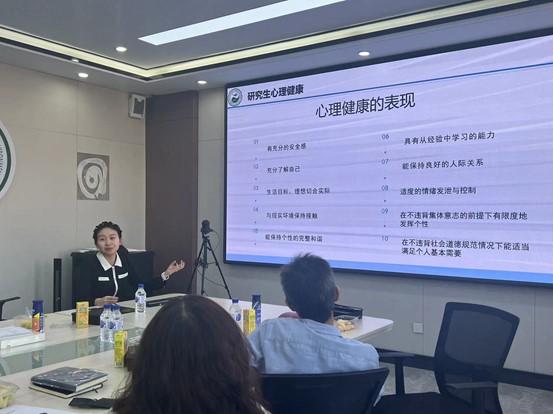 李鸿雁教授首先进行汇报,她分享了“高原格桑花”和“北国冰凌花”两个优秀学生的案例,突出了“启智润心”工作理念。董双石教授汇报内容分为思政引领、安全教育、科研训练三个部分。他着重强调了思政工作在引领学生全面发展中的重要性。他详细介绍了针对不同学生群体的思政引领策略,并强调了多种方式下安全教育对学生成长的影响。冯威教授的发言主题“如何与学生相处”。他讲述与学生成功相处的积极态度和方法,强调了在教育工作中要注重与学生良好沟通的重要性,在研究生就业方面要因材施教。辅导员李野的分享围绕心理健康展开,提出了多项措施来促进学生心理健康。随后的现场讨论环节,青年导师踊跃发言,现场气氛热烈,在讨论过程中提出了诸多有益意见和建议。