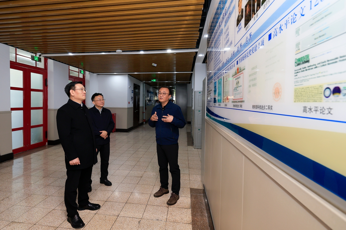 ,田辉频频询问,详细了解地下水资源与环境教育部重点实验室建设情况和科技成果产业化情况,围绕地下水资源可持续开发与供水安全、地热能开发、地质封存二氧化碳等重大战略方向和产业需求与科研人员进行交流,鼓励大家要以国家战略需求为牵引,锚定国家“双碳”战略与生态文明建设目标,着力解决前沿领域重大基础理论和关键技术问题,服务国家供水安全,为国家能源转型与生态文明建设作出更大贡献。
