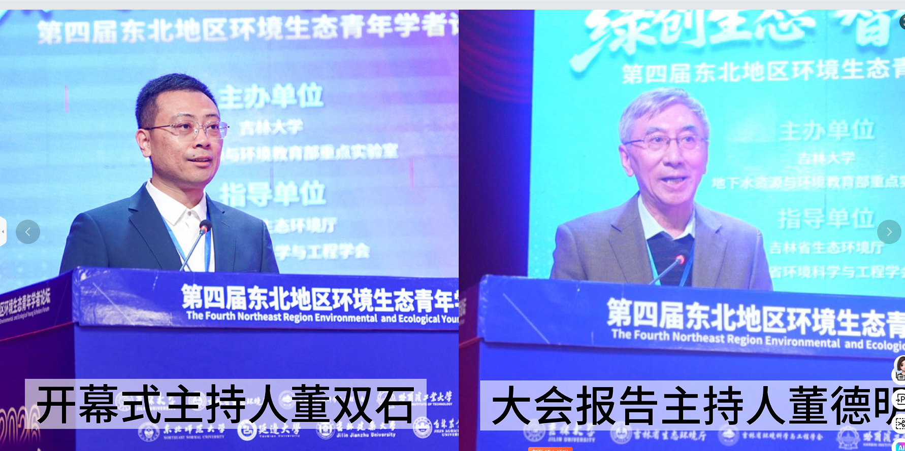 教授董德明主持。中国工程院院士、哈尔滨工业大学教授任南琪,中国工程院院士、中国科学技术大学教授俞汉青,哈尔滨工业大学教授王爱杰和东北师范大学教授周丹丹分别作大会报告。